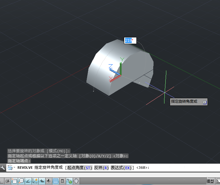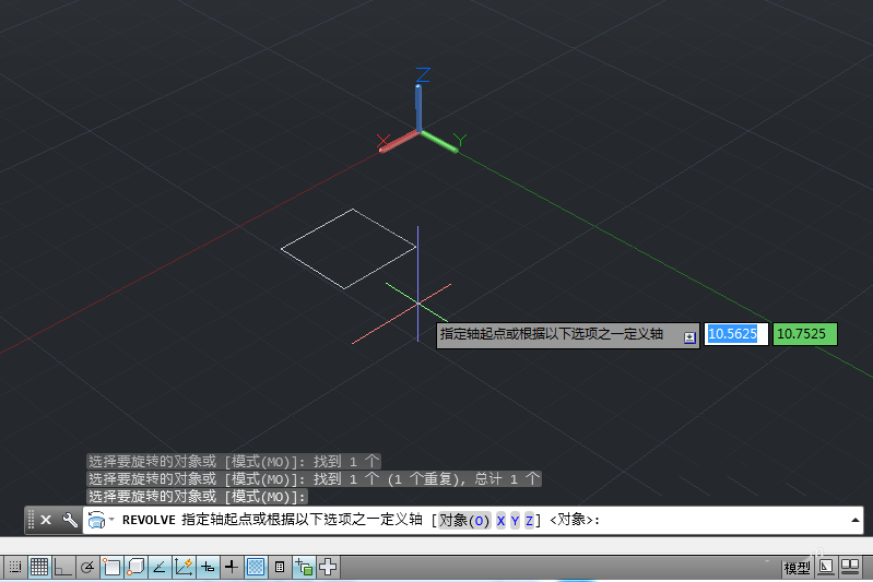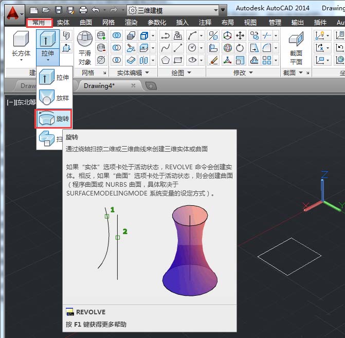 3、然后通过菜单栏【常用】》【建模】》【旋转】命令来旋转已绘制的矩形。