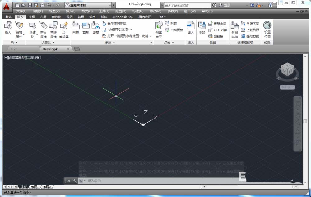 4、接着点击绘图区左上方的【俯视】按钮,选择【西南等轴测】。