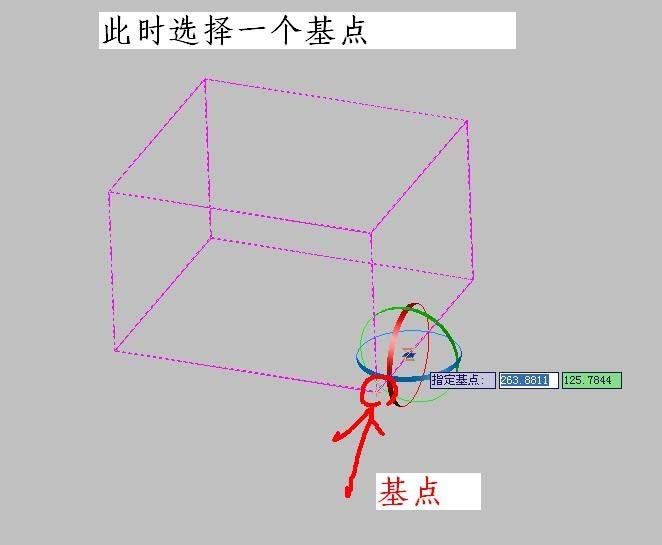 4、选择对象后提示你选择一个基点,这个基点是根据你旋转轴作为基础进行选择的。也就是你需要依照哪个轴进行旋转。