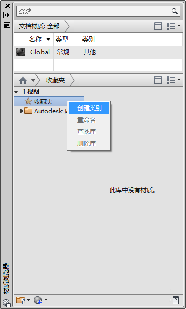 2、单击【主视图】折叠按钮,在此右键单击【收藏夹】选项,在打开的快捷菜单中选择【创建类别】选项,如图所示。