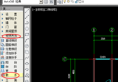 2、然后再左侧工具栏中点击楼梯其他--散水。