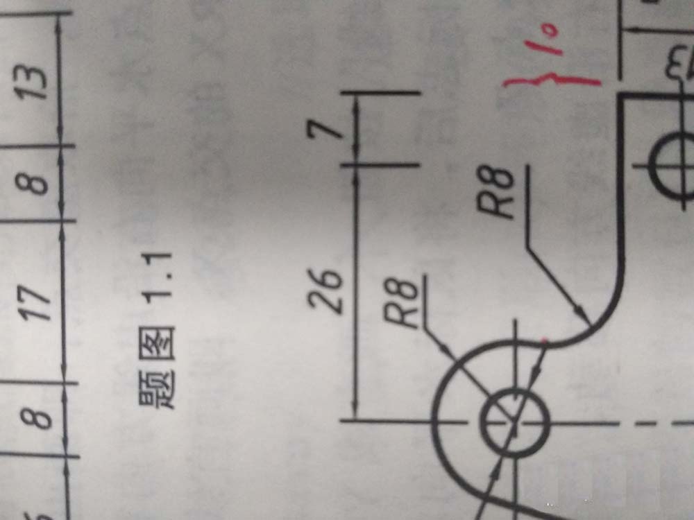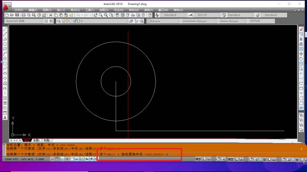 4、选择圆角工具后,看到下方的选择,输入“r”,然后空格确定,输入图纸中的半径“8”