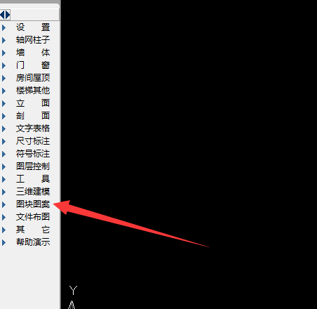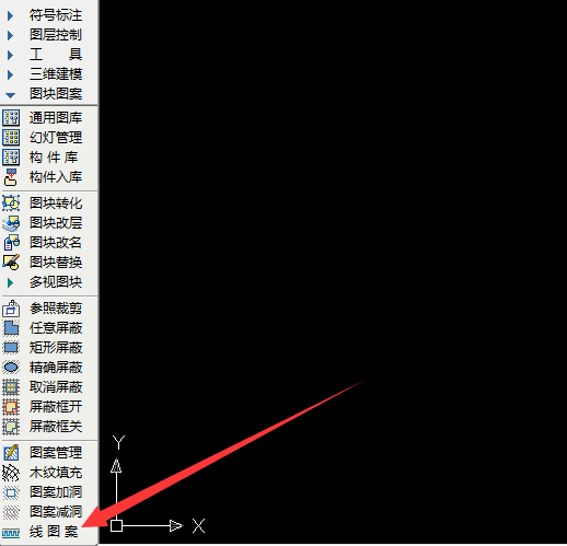 2、当我们需要插入复杂图案时,先单击左侧工具条——图块图案——线图案。