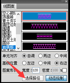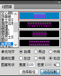 3、单击线图案,弹出对话框,先选择线图案类型,这里我们选择岩棉板,然后,选择单元对齐和基线对齐方式,设置图案宽度,最后,鼠标移动到绘图区绘制。