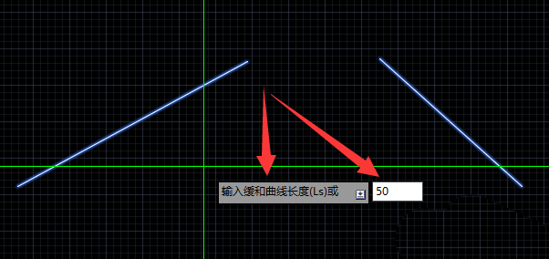 7、输入缓和曲线长度,回车,然后稍等片刻,待其自动生成曲线。