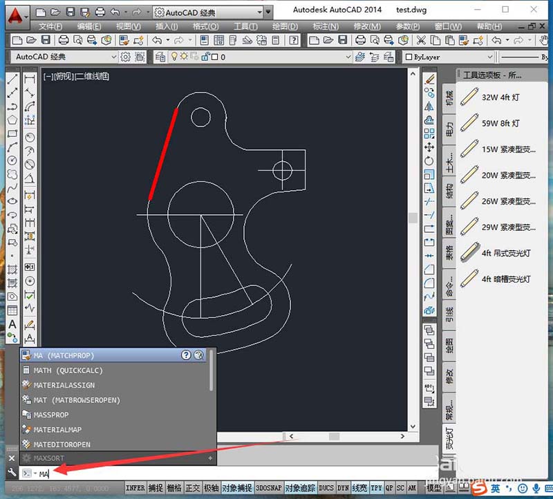 3、在命令栏中输入ma后,按空格键。