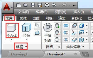 1、首先运行打开AutoCAD2014的软件,然后调整好视角,并找到【常用】》【建模】》【长方体】选项。