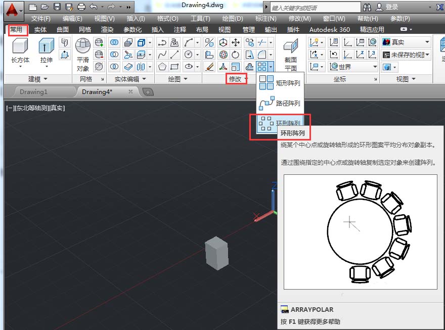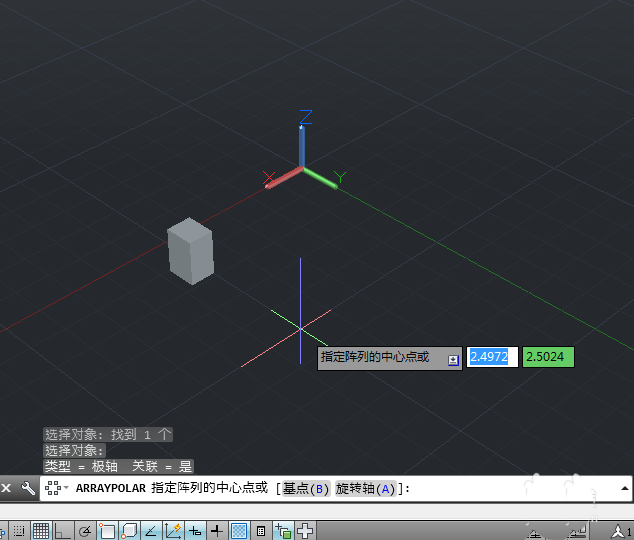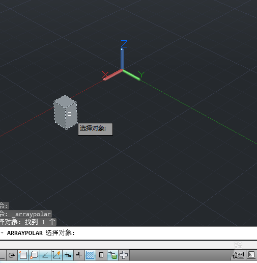 4、点击鼠标左键在绘图区选中要进行环形阵列的长方体后,按回车。