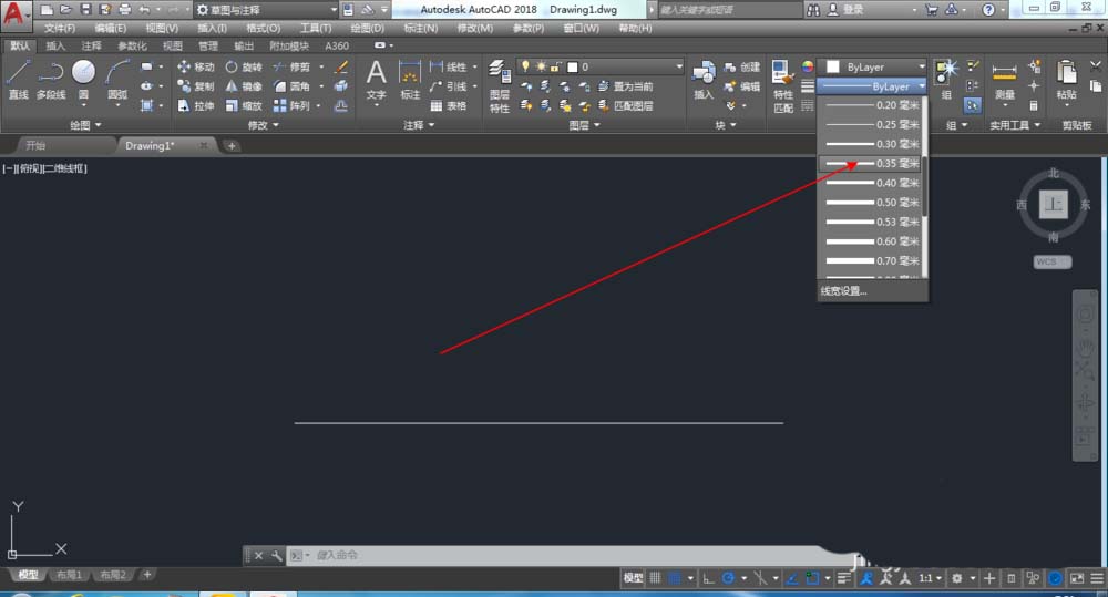 2、如上图选择0.35mm,然后开启显示线宽如图: