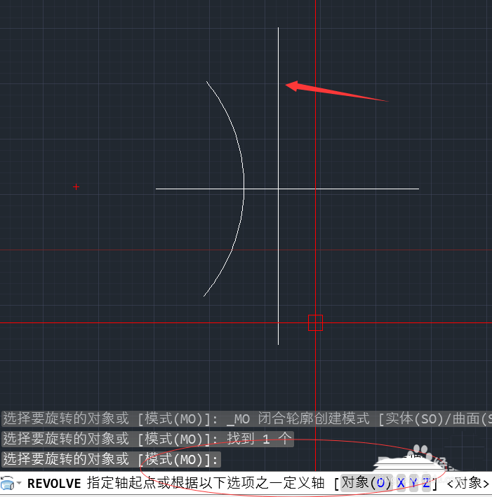 5、然后按照提示,先选择要旋转的曲面,选择之前绘制的曲线即可,然后点击空格键,然后按照提示,选择 要旋转曲线的轴线,然后选择刚刚画好的Y轴,然后再次点击 空格。