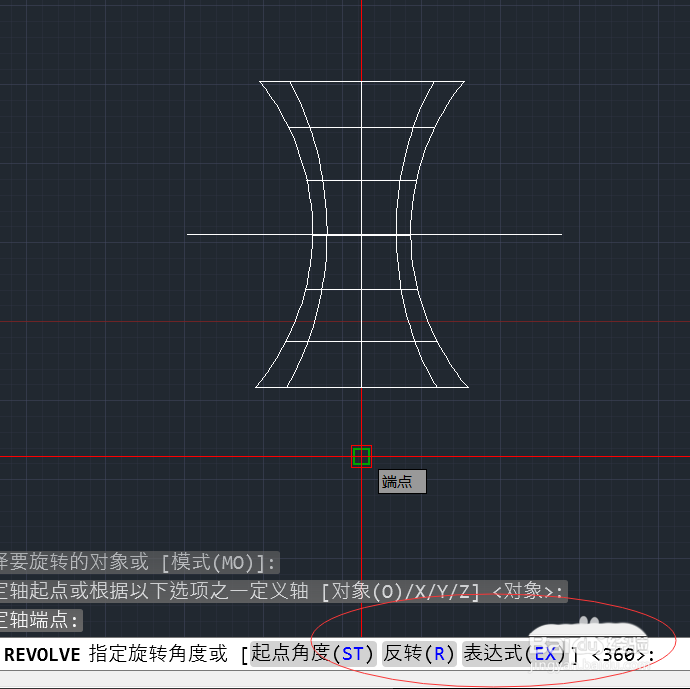 6、然后选择旋转角度,这里按照默认的的360度进行绘制,然后再次点击 空格键 确定即可完成双曲面的绘制,之后切换观看视角,即可看到你刚刚绘制的双曲面。