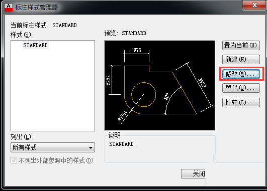 3、就会弹出标注样式管理器对话框,点击【修改】