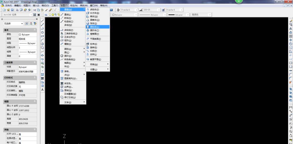 2、激活圆柱体命令,画一个直径150,高30的圆柱体方式:执行【绘图】-【建模】-【圆柱体】,输入圆心坐标0,0,0,直径150,高度30。