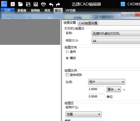 2、要绘制预留装订位我们先在CAD编辑器中建立空白文件,在CAD编辑器菜单栏转换选择单位毫米,经度为0。