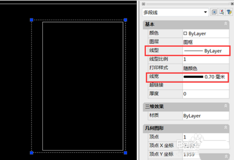 5、然后,我们选定所绘制的线框边框,进入到设置属性当中,如图所示我们可以把边框的线性等属性设置的更为明显一点,以便效果突出。