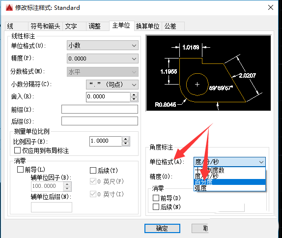 CAD中角度标注度分秒改成百分度的,该怎么标注呢?下面我们寄来看看详细的教程。