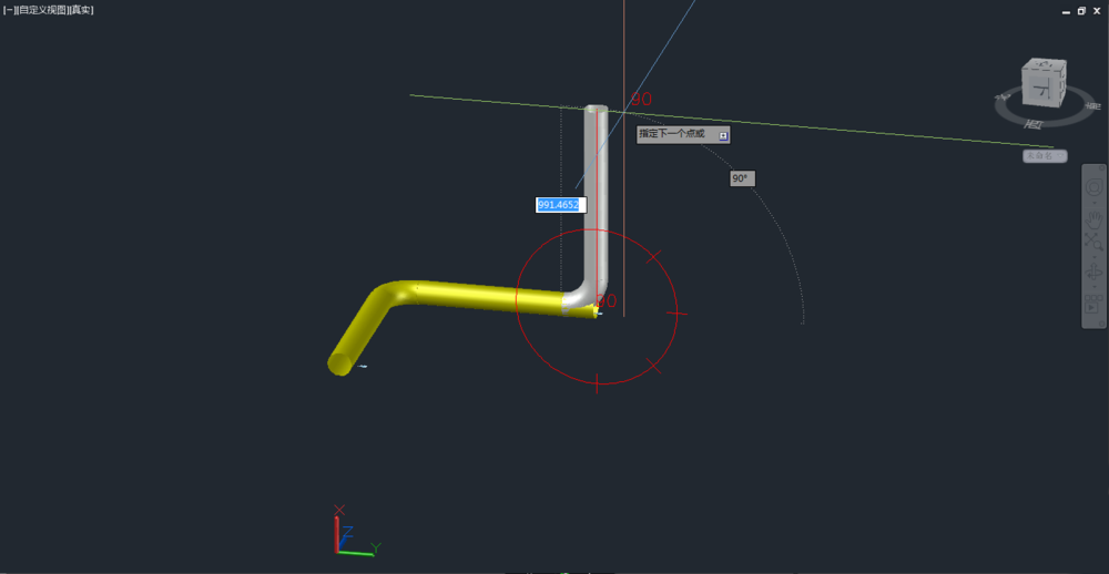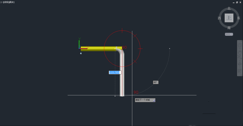 3、朝不同的方向布置,它会自动生成弯头,角度的话上面有指南针可以控制,当我们需要改变布管的平面时,按P快捷键就可以改变它的绘制平面。(可以按shit加鼠标左键转换视角)