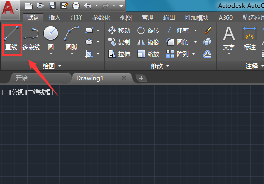 1、首先我们需要找到CAD的快捷图标,双击之后打开CAD这款软件,然后在菜单里找到直线命令,如图所示: