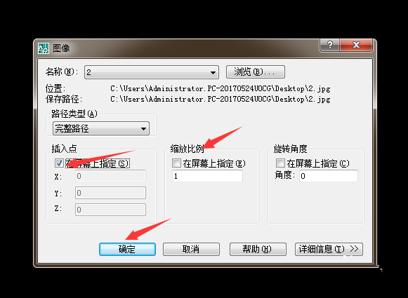 2、选择你要用的图片,然后单击,出现下图第二张对话框,按照下图箭头所示设置,然后确定。
