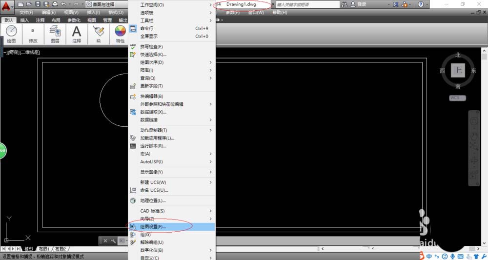 4、如图所示,弹出"工具"菜单选项。选择"绘图设置..."项,用于打开"草图设置"对话框。