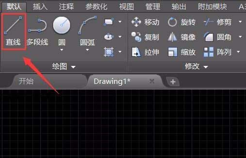 3、再在常用菜单里找到直线命令,如图所示: