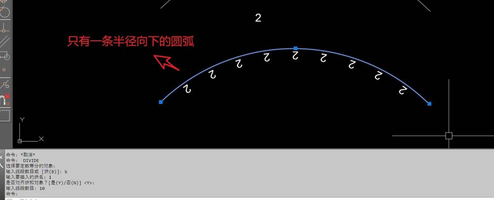 6、如果刚开始只画一个向下半径的圆弧,文字均分对齐时就会是倒立的,如图