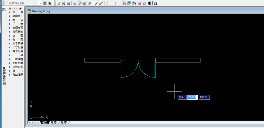 1、打开天正建筑,绘制一面墙,并在墙上加一个门,如下图所示