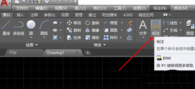 2、当然,我们也可以通过命令行的方式打开,具体快捷命令为DIM。