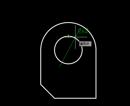 3、比如我们要标注圆的半径或者直径,只需要选中智能标注以后鼠标放置在圆上,然后自动出现半径或者直径的标注,鼠标向圆内侧移动则会出现半径标注,向外侧则会出现直径标注,然后点击左键。