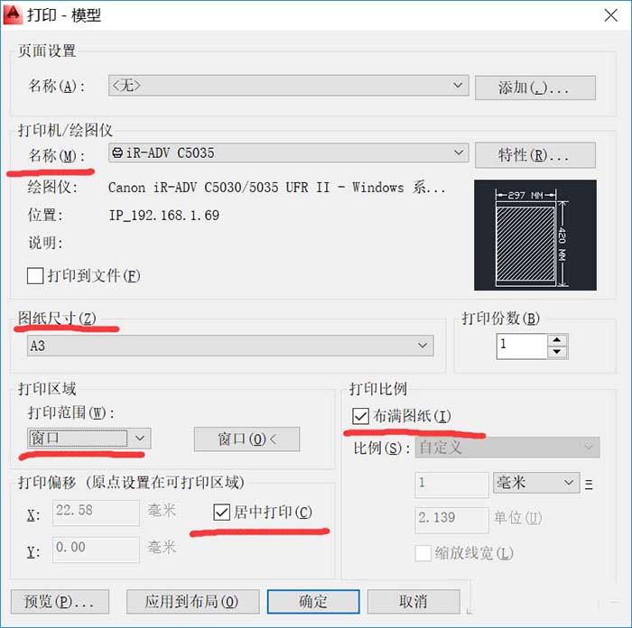 3、这时候我们就进入了“打印-模型”,我们需要选择打印机,选择图纸的尺寸“A3”。