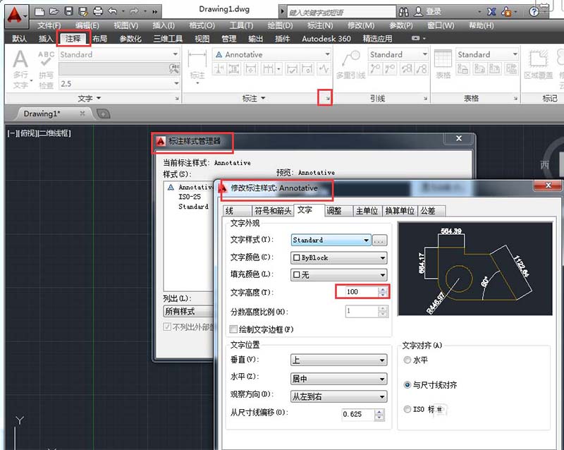 8、如果设置完成后看不见标注文字,请通过【标注样式管理器】对当前样式进行【文字高度】的修改。
