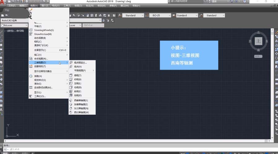 2、在“三维视图”中选择“西南等轴测”