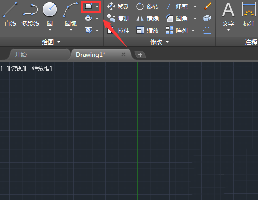 2、选择矩形我们在绘图区里画出一个矩形作为厂房的外轮廓,如图所示: