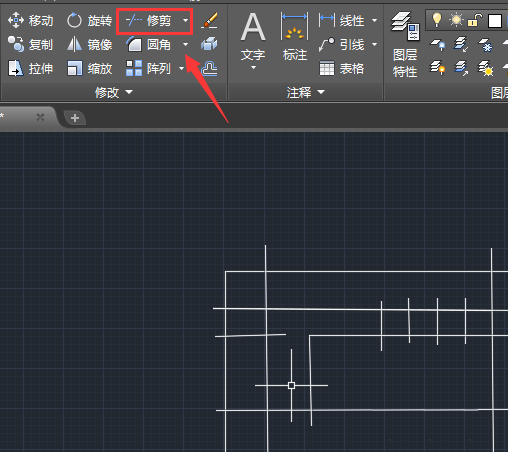5、绘制好之后再在修改里找到修剪命令,如图所示: