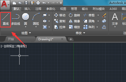 1、将CAD这款软件打开,然后在绘图里找到直线命令,如图所示: