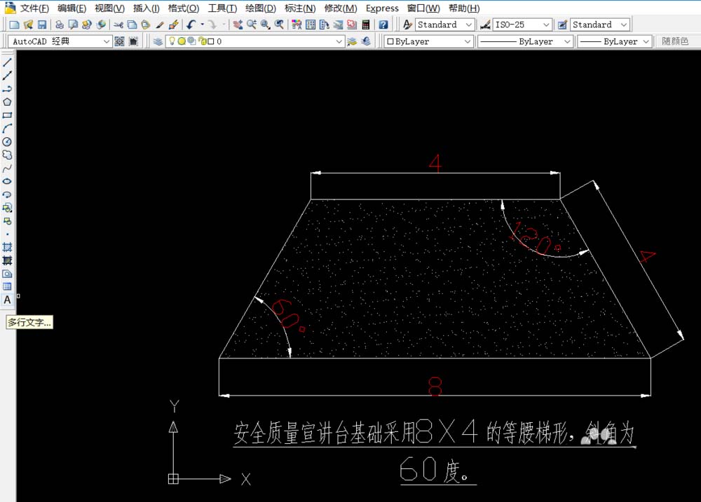 2、点击绘图工具栏中的“多行文字按钮”,下方输入图纸文字说明