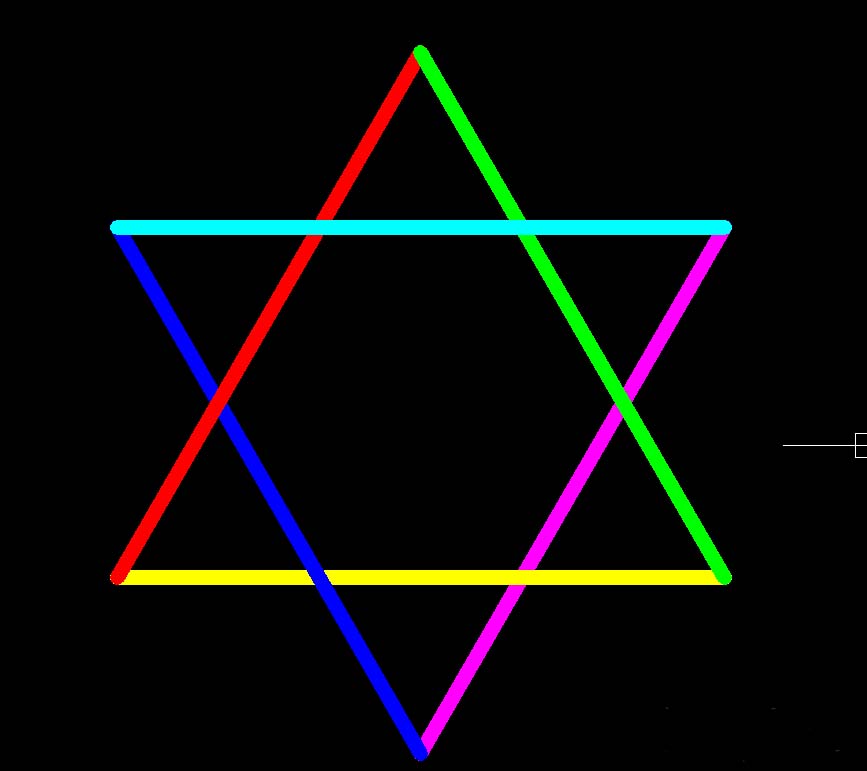 8、如下图所示,六芒星完成了,是不是跟简介中的配图有点不一样呢?只要把线段的宽度调到最大就和简介中的配图一模一样了。