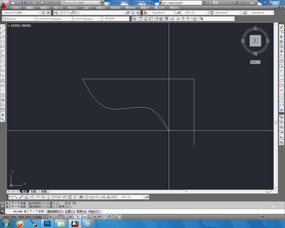 2、点击【样条曲线】工具,绘制出连接横纵两线的曲线,点击曲线上的点,对曲线的弯曲幅度进行调整;