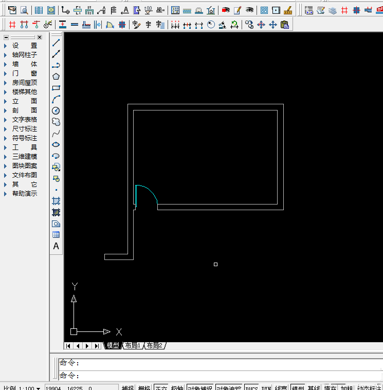 1、打开天正建筑,并绘制一个房间,如下图所示