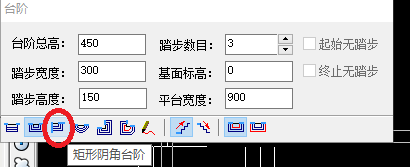 3、打开“台阶”编辑页面,点击“矩形阴角台阶”,如下图所示