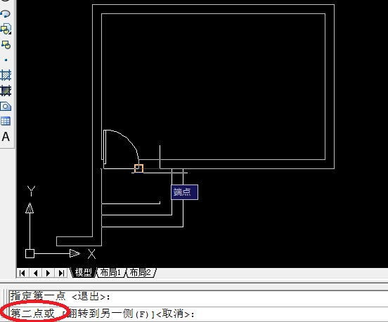 5、输入完成后,根据命令行提示依次点击“指定第一点”、“第二点”,如下图所示