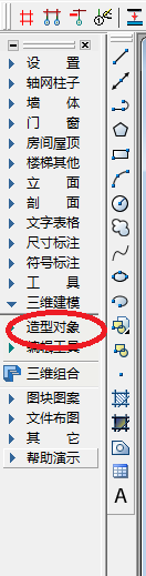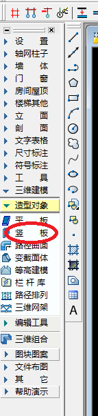2、点击“三维建模”,然后点击二次目录“造型对象”,最后点击“竖板”,如下图所示