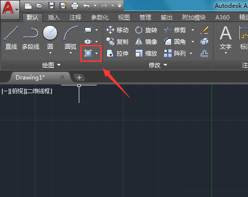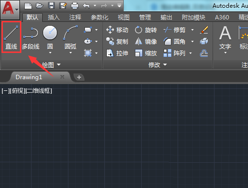 1、我们先将CAD打开并在打开的操作界面内找到直线命令,如图所示: