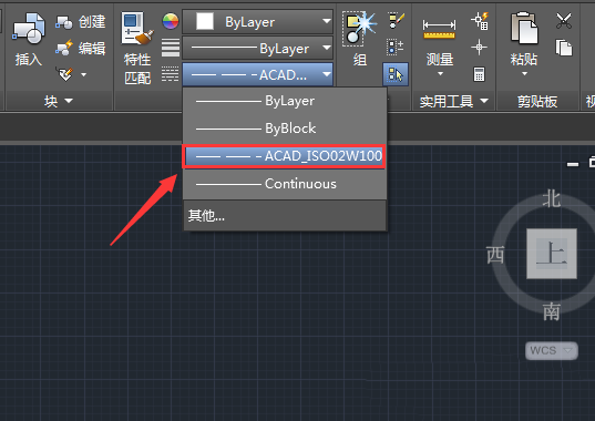 4、选择埋地装置和连接线我们找到线型选项,在线型内选择虚线,如图所示: