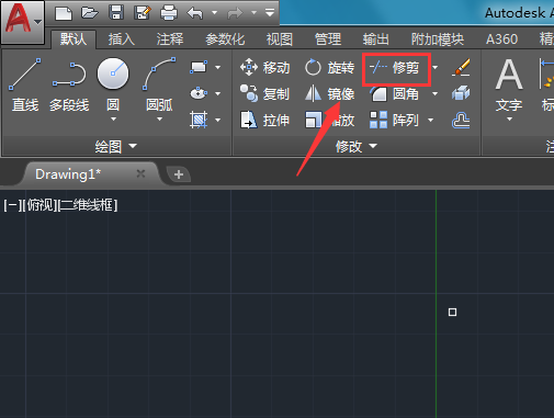7、绘制个各种图形之后再在修改里找到修剪选项,如图所示: