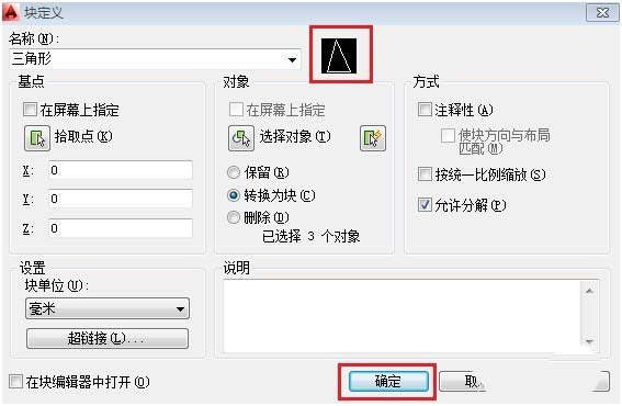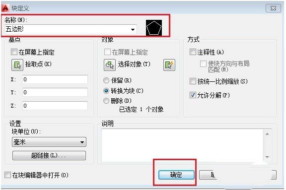 选择后,返回块定义界面,然后点击【确定】。