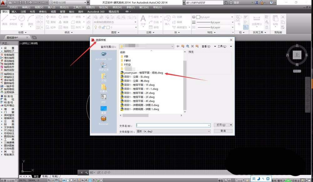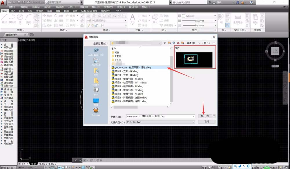4、新建标签页开启CAD图纸,可以选择已经制作好的CAD图纸,也可以直接选择CAD模版文件,选择文件,我们可以在右侧浏览窗口看到图纸的大致内容。