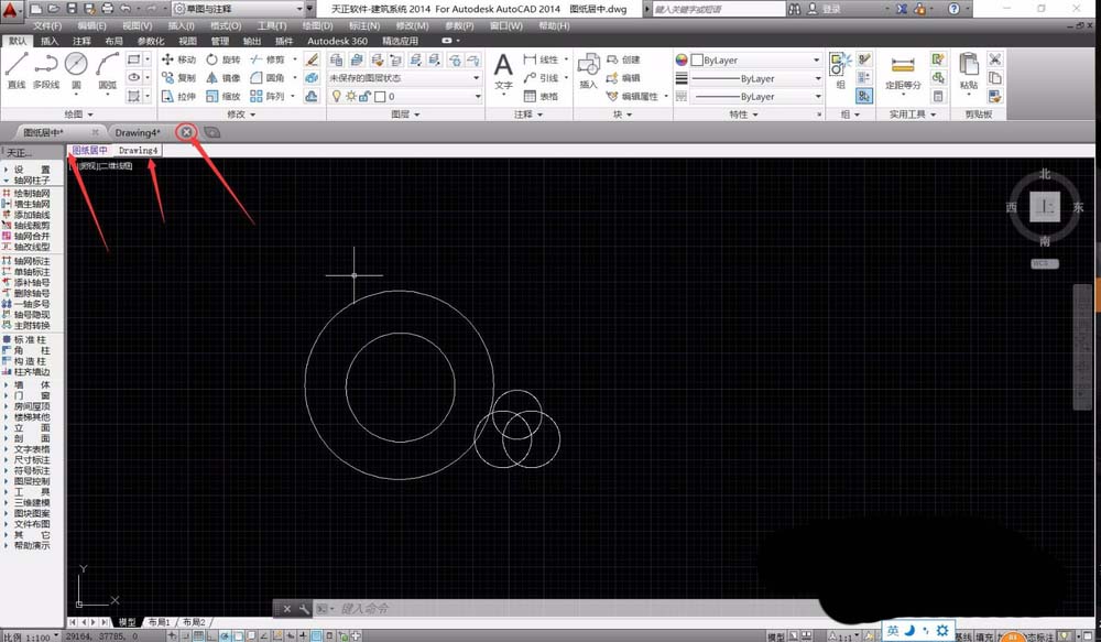 6、我们在CAD标签栏中,可以看到所有的CAD图纸,并且鼠标左键单击即可切换到对应的图纸,在标签栏上还有“×”号,可以对标签图纸进行关闭。