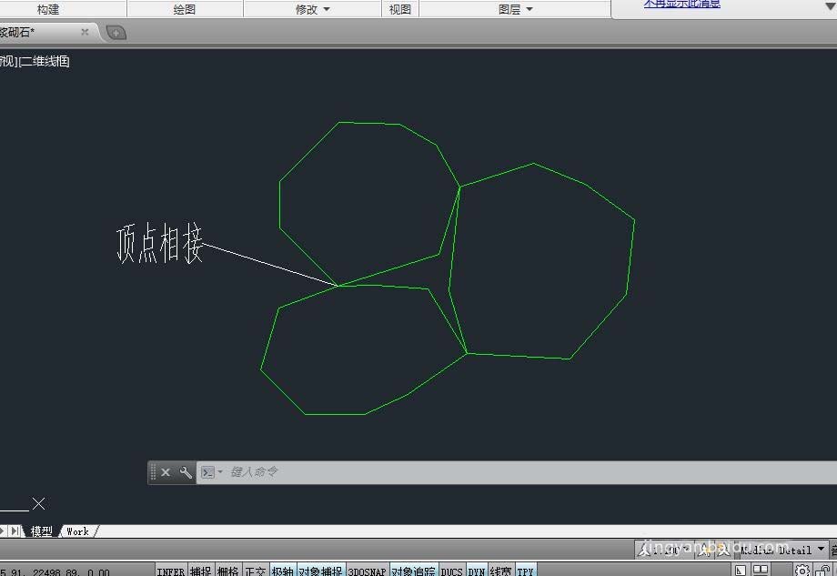 2、再绘制其余两个块石与第一个块石相应顶点相接,这是方便以后填充。(而且三个块石的大小及相应比例,位置等,需要绘图者自己把握,一定要比例合适)