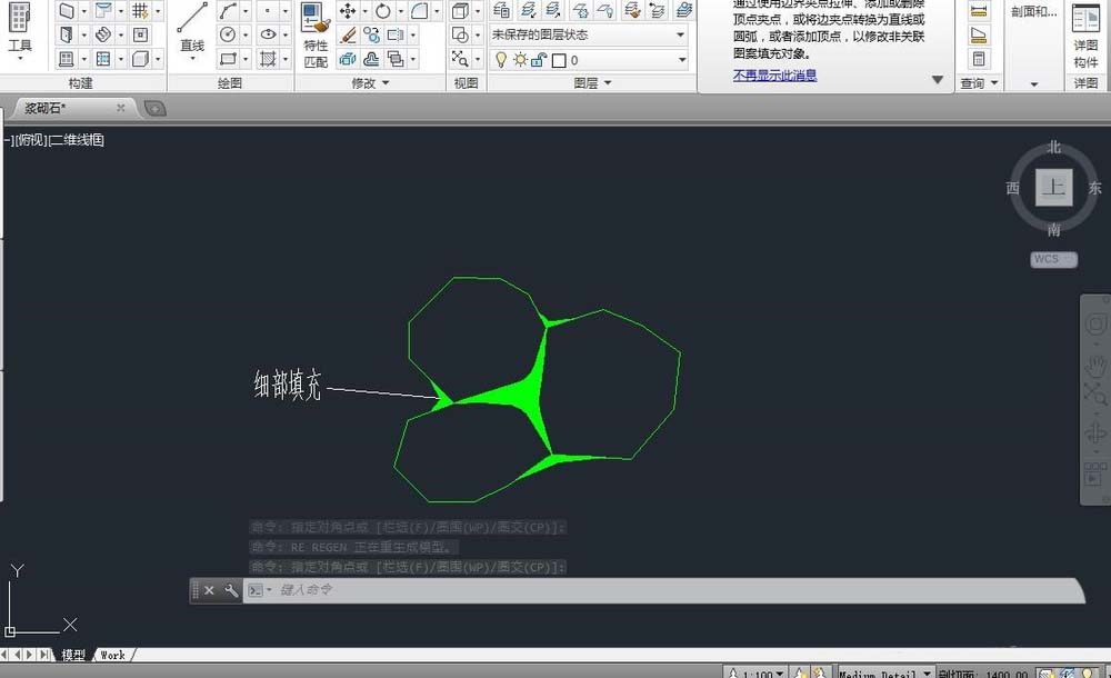 5、因为浆砌石不只是三块石组成的,而是很多块石组成的结构,所以要将外部角稍微填充,以此来显示浆砌石的连续效果。如图。